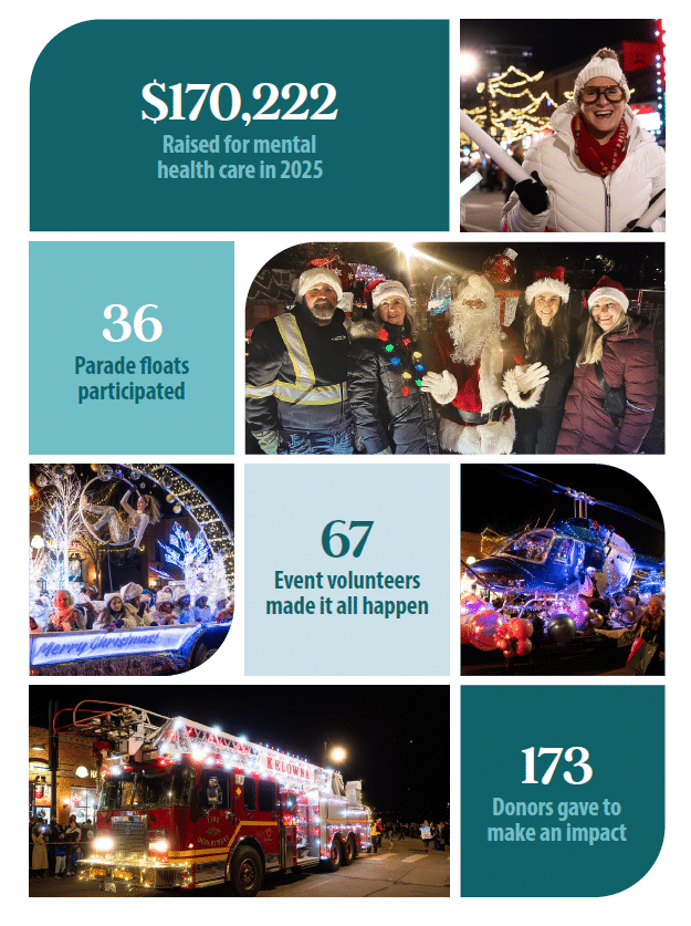As the last float cleared Bernard Avenue, and the crowd dispersed, the impact of the evening was only just beginning. More than just a seasonal celebration, Parade with a Purpose represents the community choosing to invest in local mental health care. The funds raised will translate into expanded services, greater access, and meaningful support for people across our region. Long after the holiday season, the magic of the event will continue to show up where it matters most.